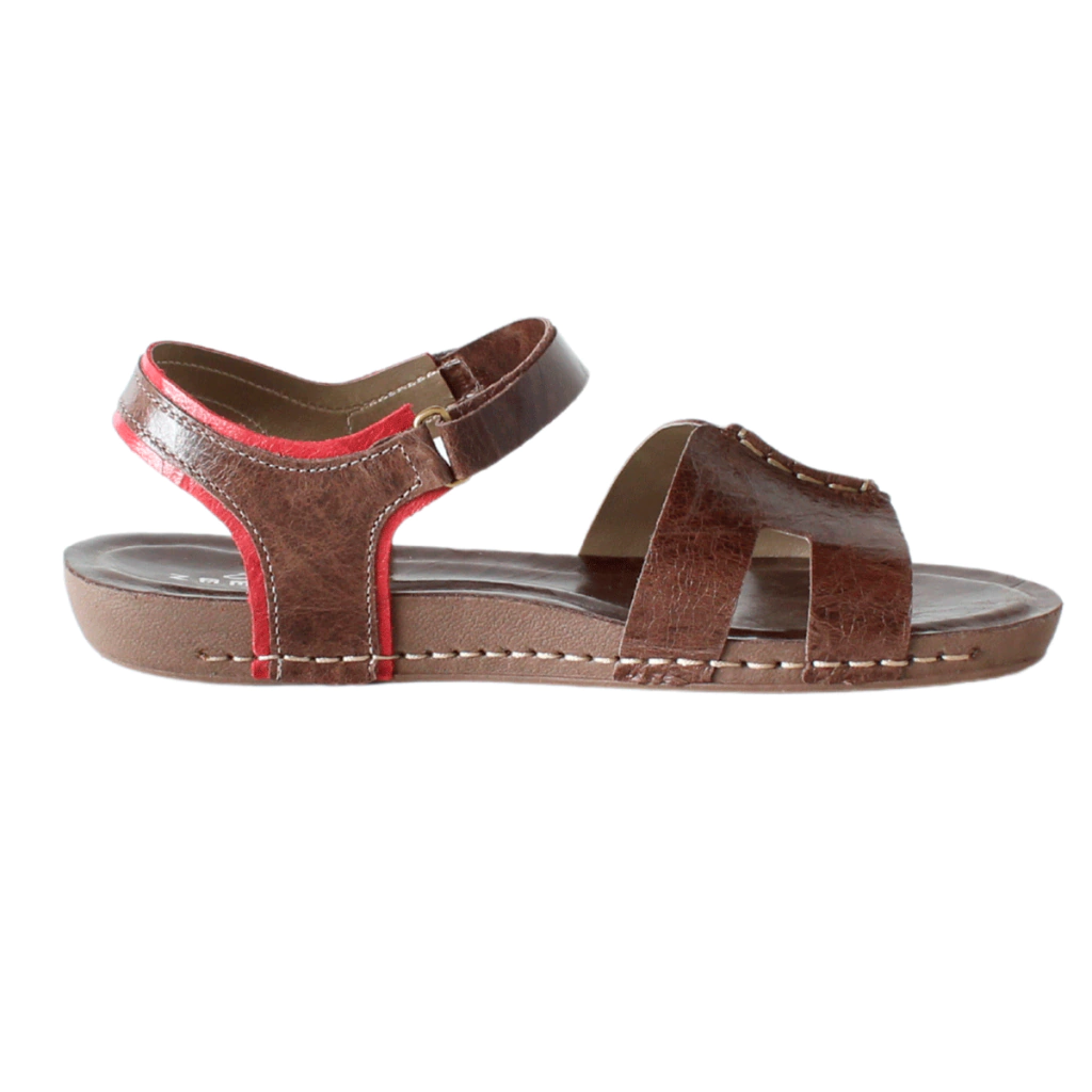 Essa sandália reflete uma união de tradição e inovação, oferecendo uma peça artesanal que não compromete o conforto ou a qualidade. Confeccionada em couro forrado, a sandália demonstra uma preocupação com a durabilidade, prometendo acompanhar sua usuária por muitas estações. O couro, material nobre e resistente, apresenta uma textura rica que contribui para a estética elegante do calçado.