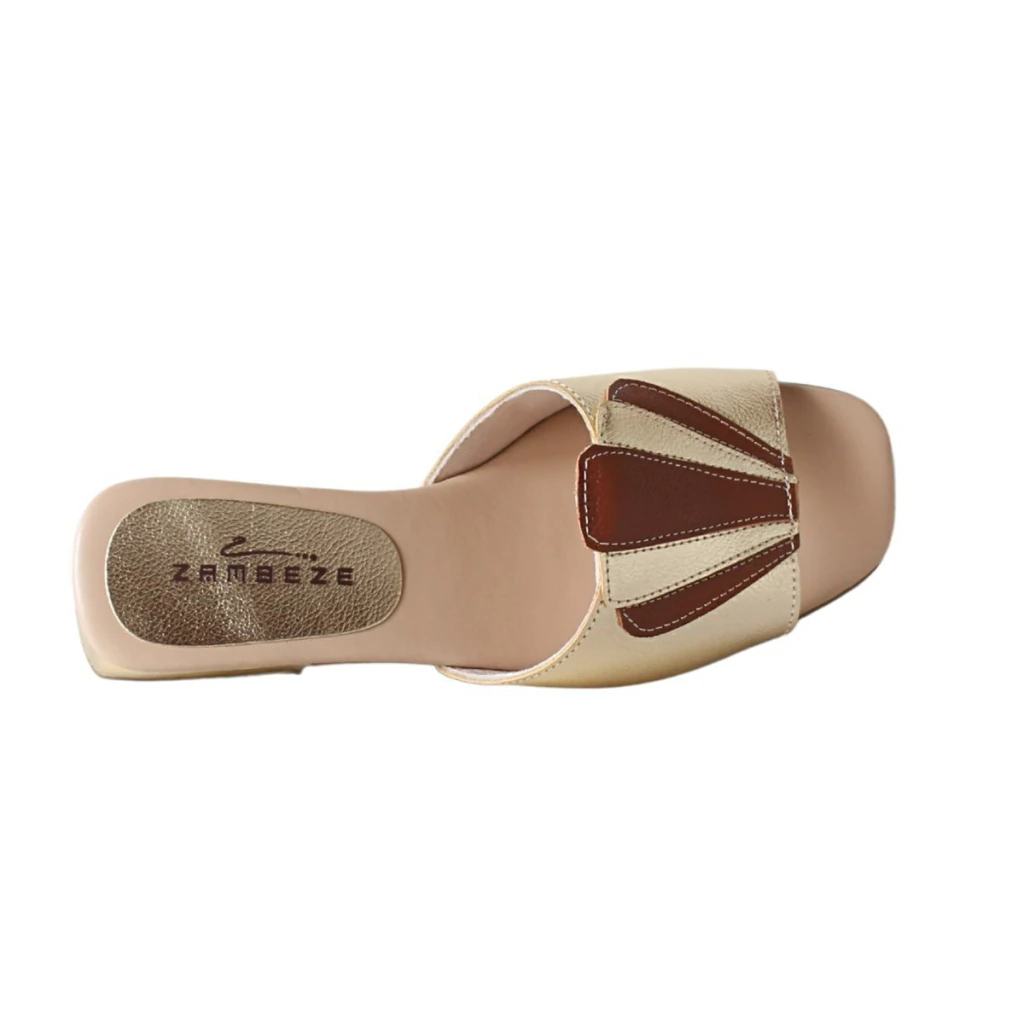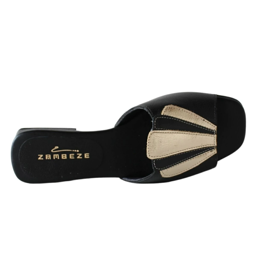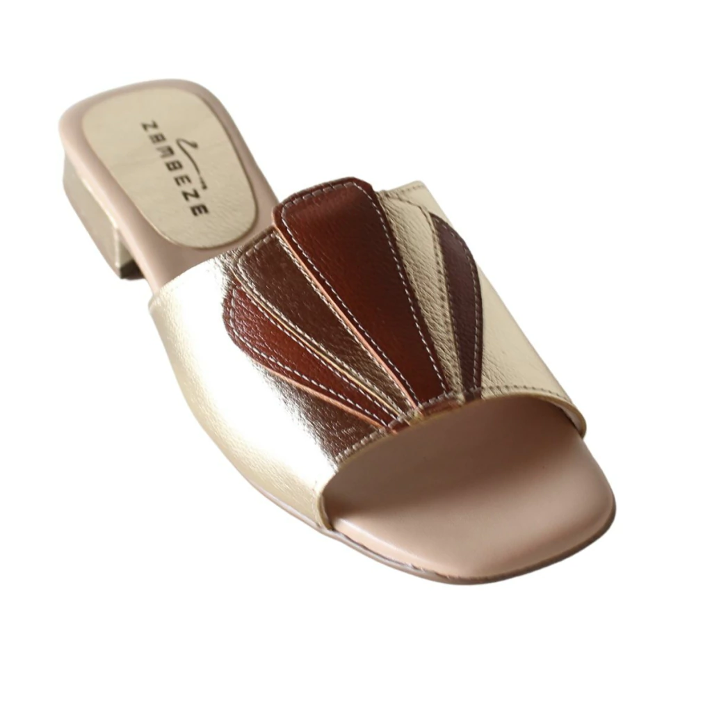 Essa sandália da Zambeze é uma joia do estilo retrô Boho com toque moderno. Com design inspirado no art déco, ela se destaca pela aplicação em formato de leque sobre o cabedal, feita com recortes em couro metalizado e tons contrastantes que valorizam o visual. A base é estruturada com palmilha macia e salto baixo quadrado, oferecendo conforto e estabilidade para o uso diário.
