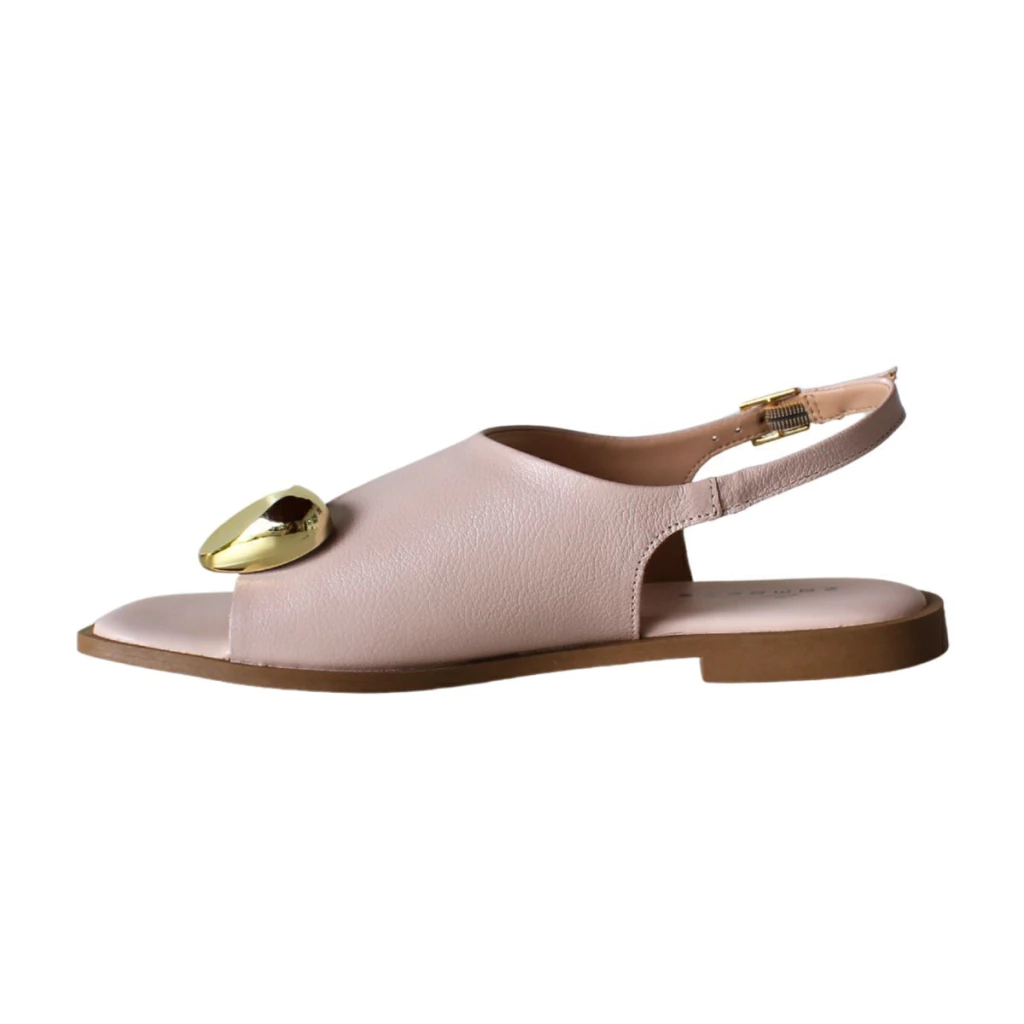 O destaque fica por conta do detalhe metálico dourado sobre o peito do pé, que traz um toque moderno e refinado à composição.