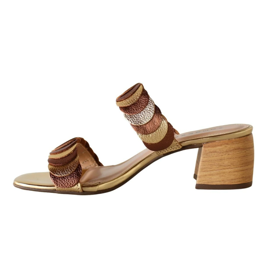 Esse tamanco da Zambeze é confeccionado em couro legítimo, garantindo durabilidade e um acabamento impecável. O grande destaque está nas tiras com detalhe incrível de sobreposição de couro em tons metalizados e terrosos, que criam um visual moderno e exclusivo. Seu salto bloco de 5cm proporciona a altura ideal para alongar a silhueta sem abrir mão da estabilidade, enquanto a palmilha macia e confortável oferece bem-estar durante todo o dia.