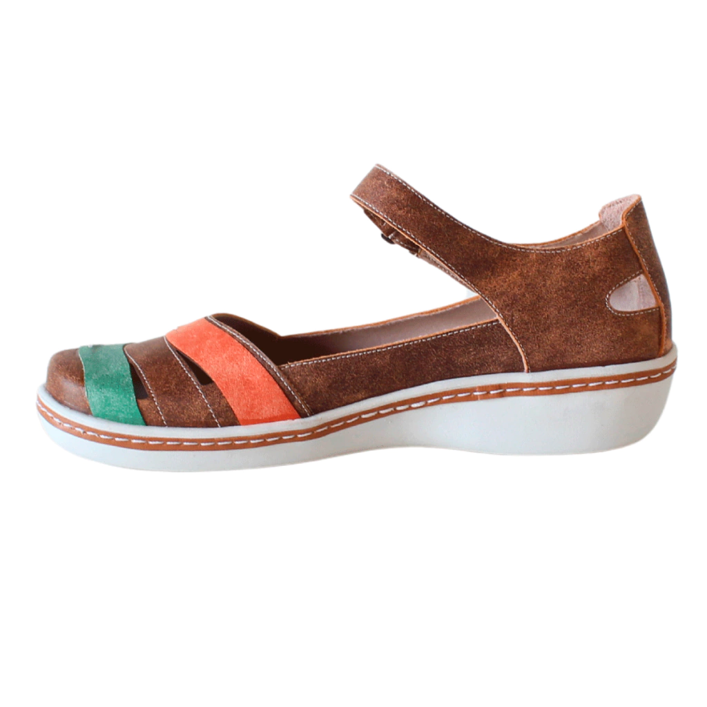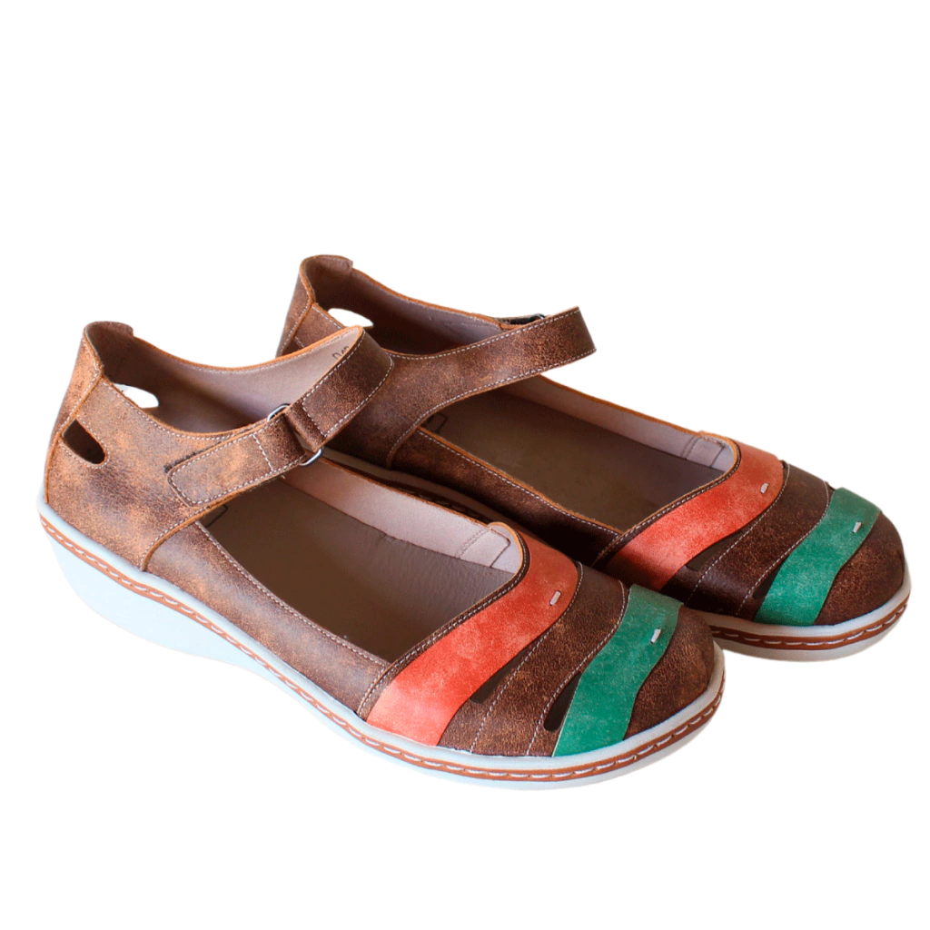 Couro Macio e Formato Anatômico: O couro extremamente macio e o formato arredondado da frente do calçado são ideais para quem sofre com joanetes, oferecendo espaço e conforto sem irritação.